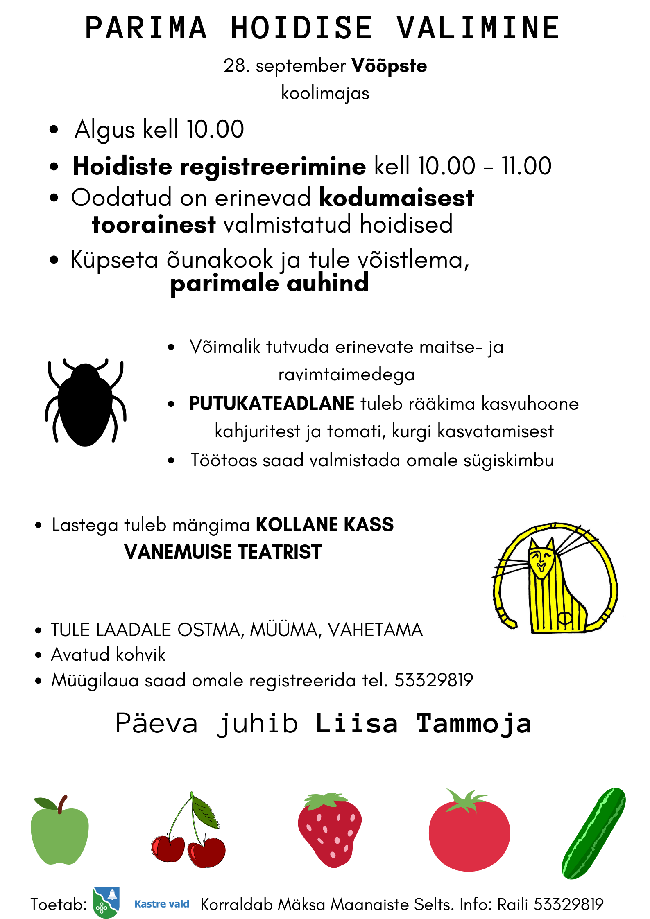 28. septembril sõidab Luunja Maanaiste Selts külla Mäksa Maanaiste Selts ile Võõpste koolimajja. Registreerumine 25. septembriks lillerei@gmail.com või telefonil 5145457. ...