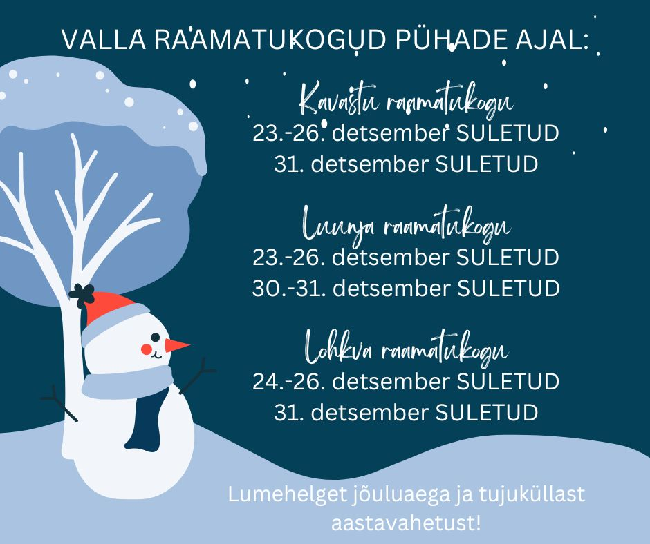 Valla raamatukogude lahtiolekuaegadest pühade ajal