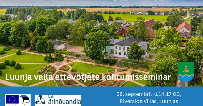 Tartu Ärinõuandla ja Luunja vald kutsuvad Luunja vallaga seotud ettevõtjaid ja ettevõtlushuvilisi kohtumisseminarile, kus antakse ülevaade valla päevakajalistest teemadest, tutvustatakse Tartu Ärinõuandla teenuseid ning räägitakse energia kokkuhoiust.