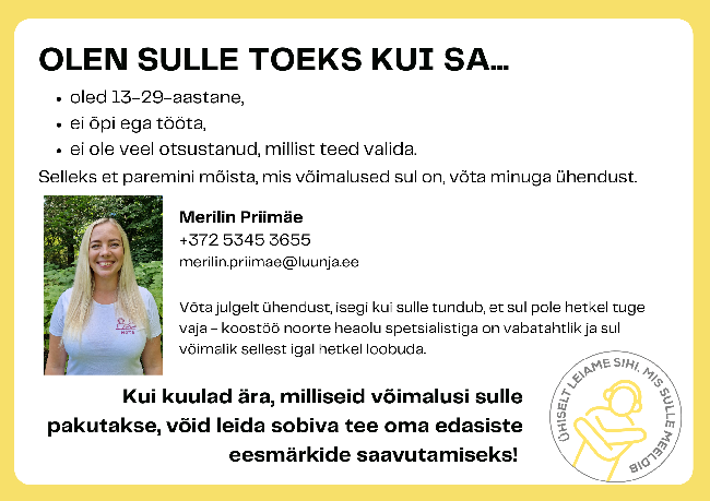 Noorte heaolu spetsialist toetab mittetöötavaid ja -õppivaid noori ja nende lähedasi
